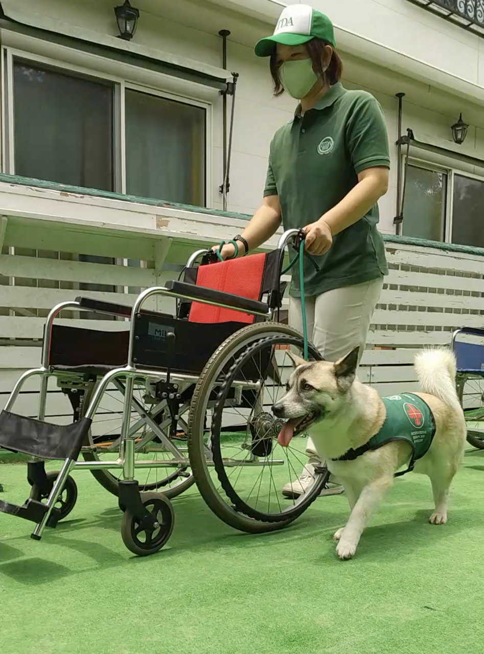 チロリの誘導の仕方は、まさに病人やお年寄りのゆっくりした歩みに合わせて進む、セラピードッグの歩行そのものでした。