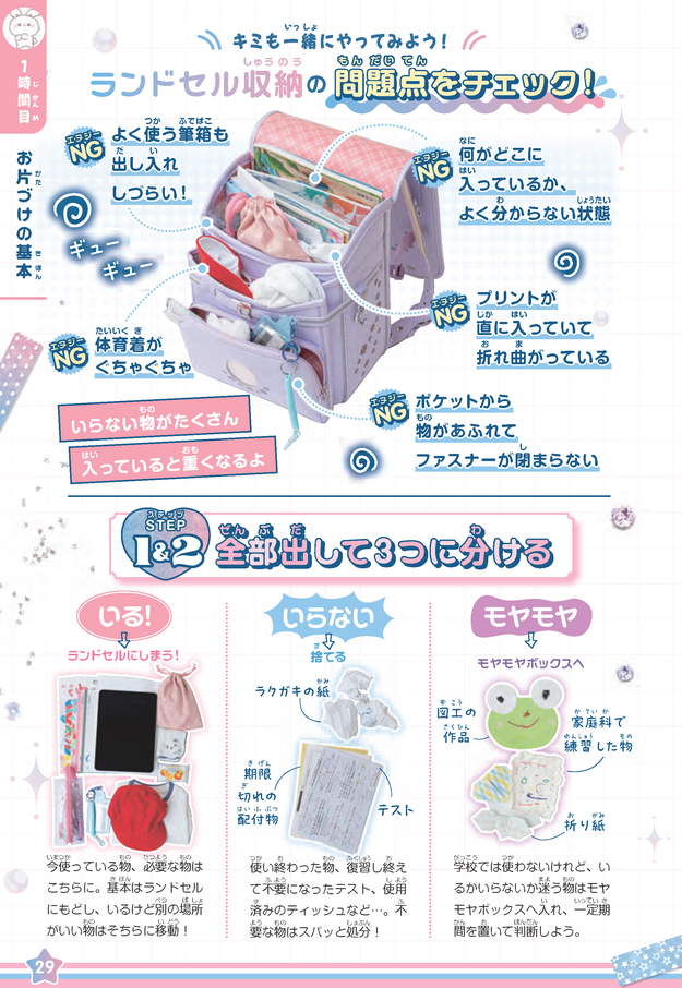 本書ではまず、取り組みやすいランドセルの中を整理することからスタート。