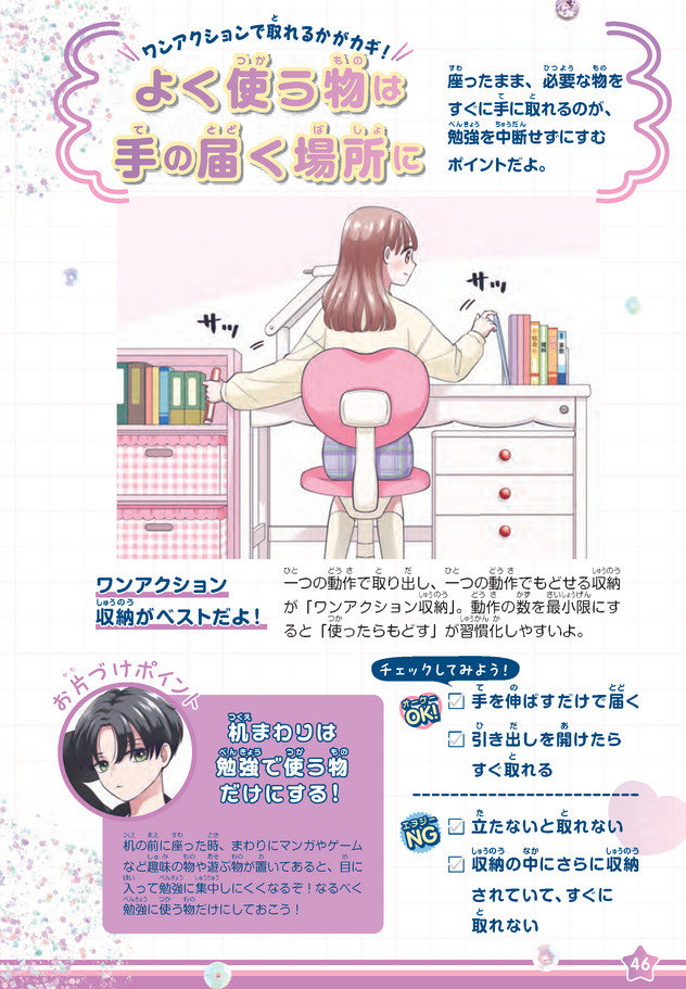 親子で読むことで、「なぜ片づけるのか」「どうやってやるのか」というイメージを共有できるのも、この本の大きな魅力です。