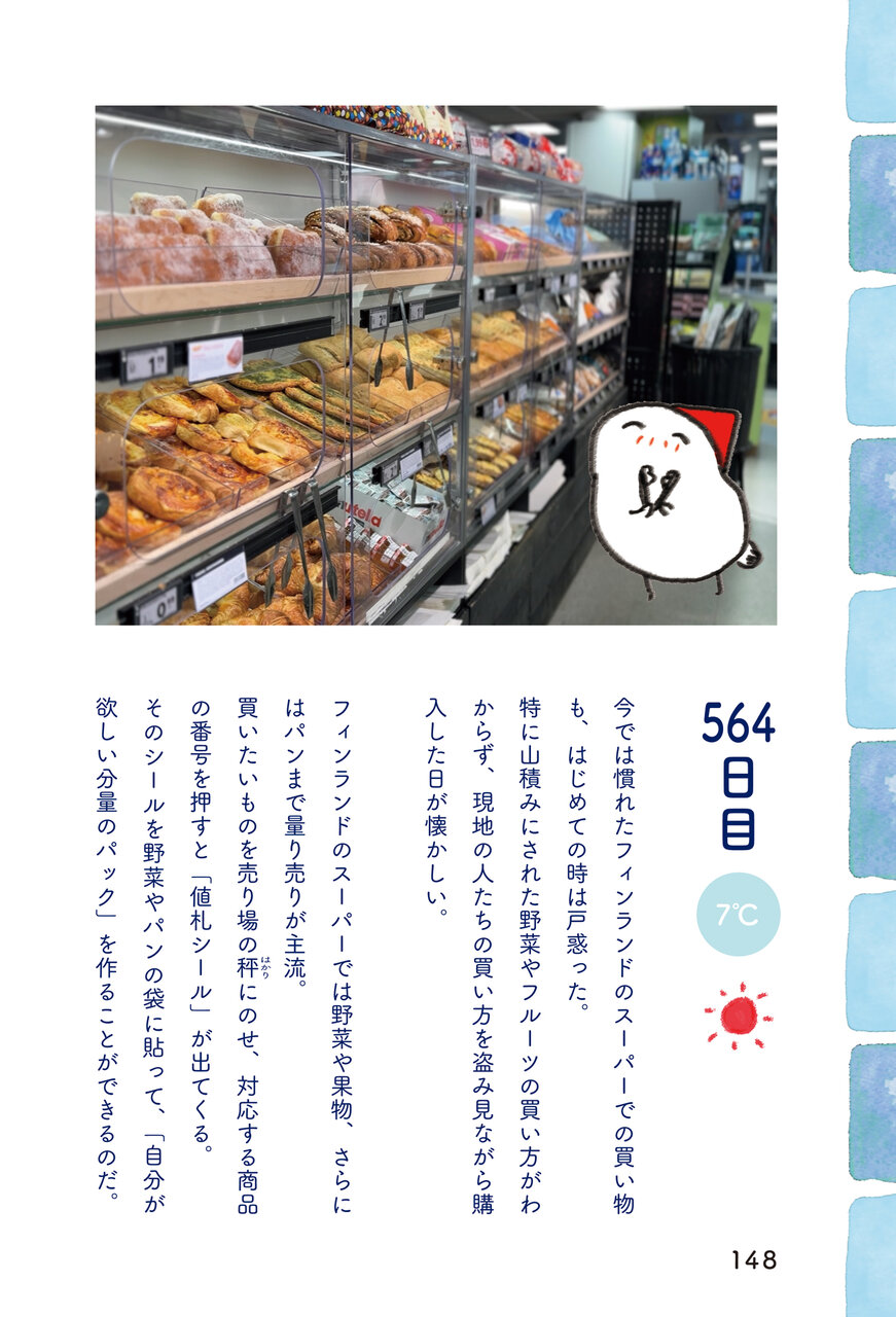 クリスマスマーケットで買ったストロベリー仕立てのホットワインのおいしさや、サウナ大国フィンランド流のワイルドなサウナ、フィンランド人の同僚が作ってくれた“ちらし寿司”に元気をもらった夜。まいにちの暮らしに含まれるハッピーなことや、大変だったことが、写真と日記、それからかわいいイラストで描かれる。まいにちが、やがて大きな織物のようになっていくのがよくわかる。