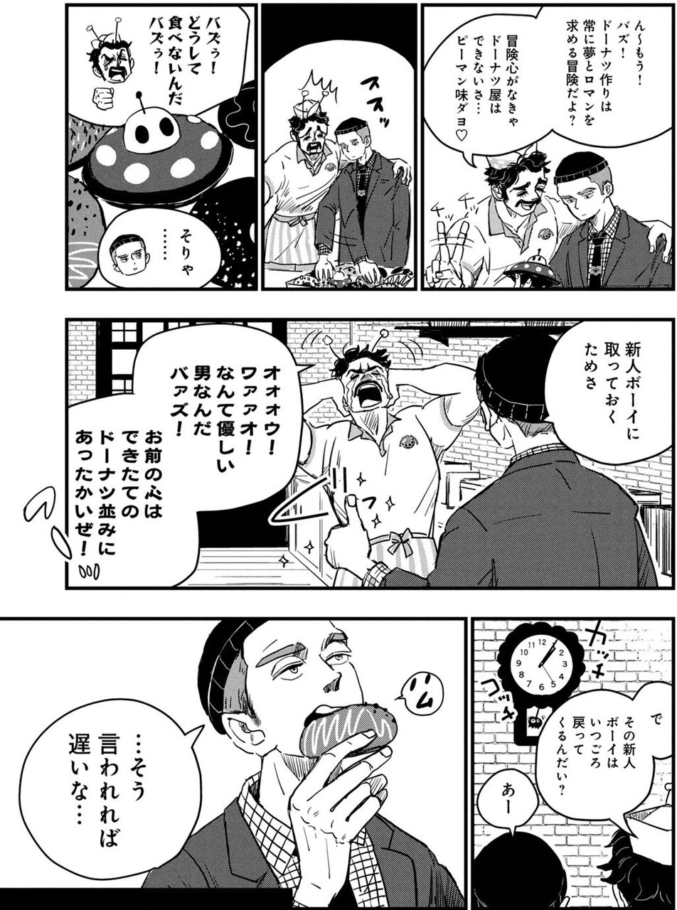本作の作者は五鹿マルメ先生。前作の『きょうもあしたも蕨井先生』では、クオッカワラビーの蕨井先生が毎月優しい癒しを届けてくれる、ほのぼのとした作風が印象的でした。それだけに、本格サスペンスに挑んだ今作の振り幅の大きさには驚かされます。ですが物語の端々に、五鹿先生らしいユーモアとあたたかさがしっかり息づいています。作中に登場する“ピーマンドーナツ”の味を想像してしまうのも、読後のちょっとした楽しみです。