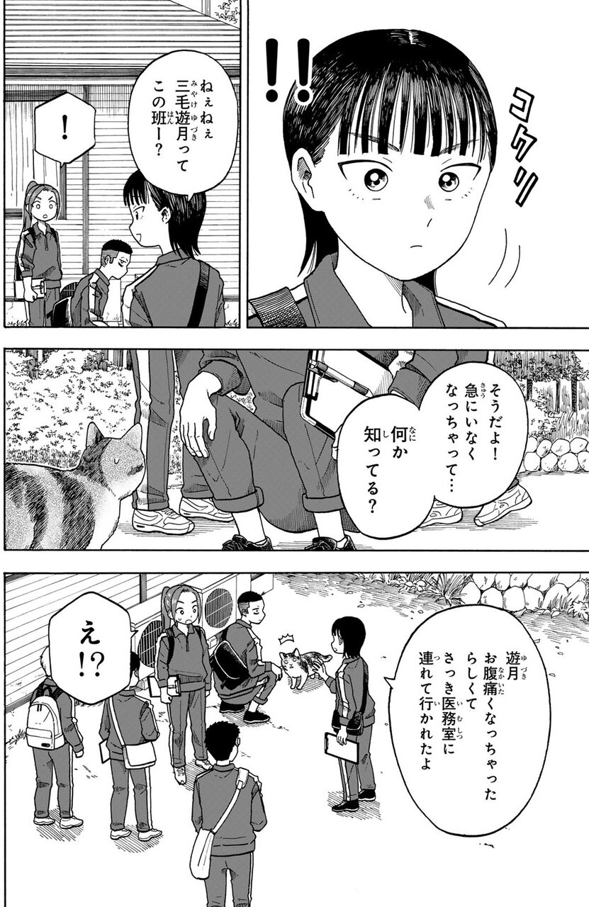 遊月にとって入学以来いちばん楽しい時間だったわけですが、今度は徐々に猫化が解けてしまう事態に。しっぽが消え、耳が消え……。夏梅の前で人に戻ってはマズイ、と慌ててその場から逃げ出した遊月。