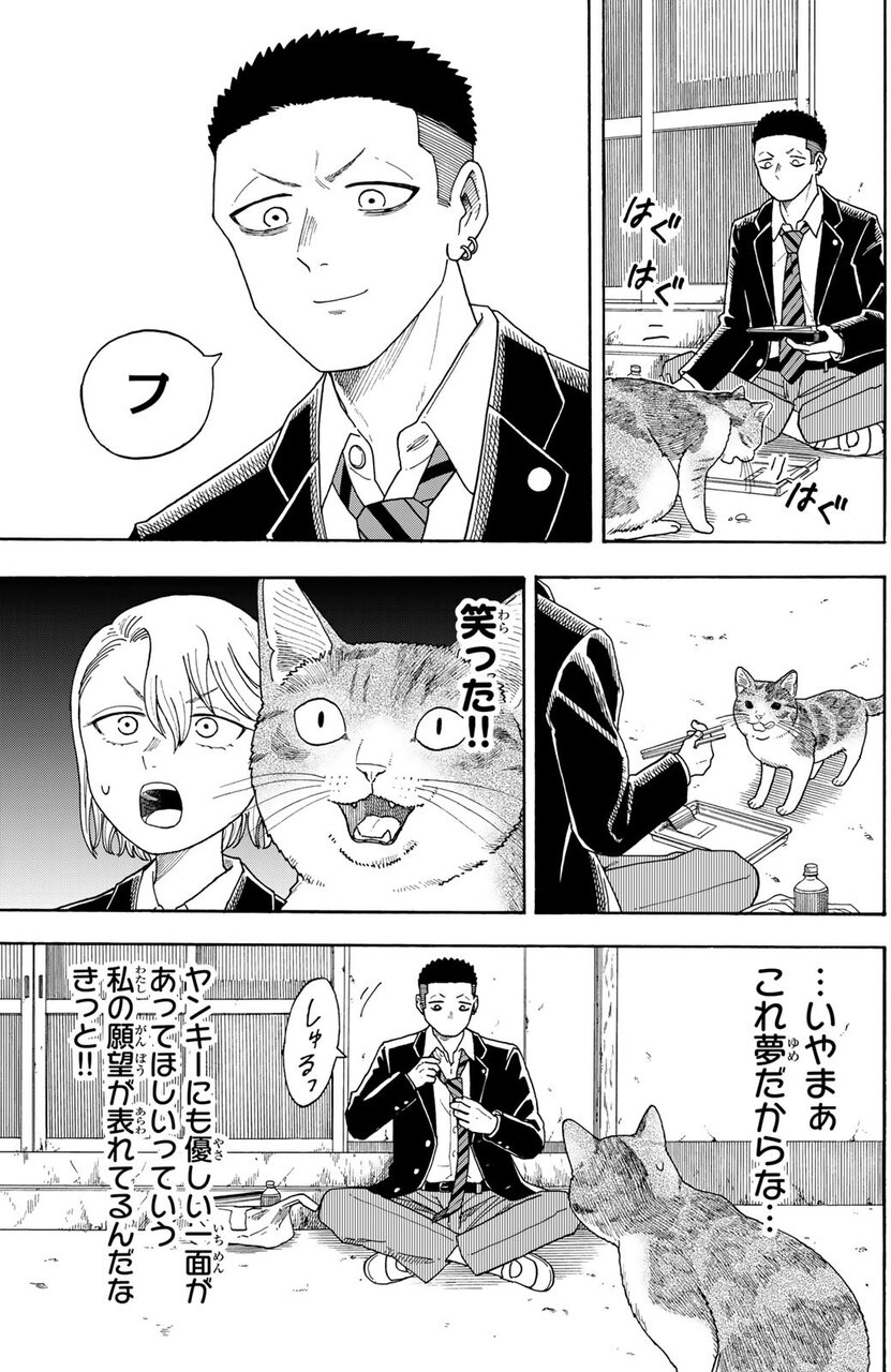 “猫をかわいがる不良”というベタな構図でありながら、そこには「パッと見の印象で相手を判断しない」というコミュニケーションの基本が隠れています。これは遊月視点ですが、逆に夏梅視点で言えば、「(猫以外にも)素を見せることで距離が縮まる」という、これまた基本的なポイントが示されたエピソードでもあります。