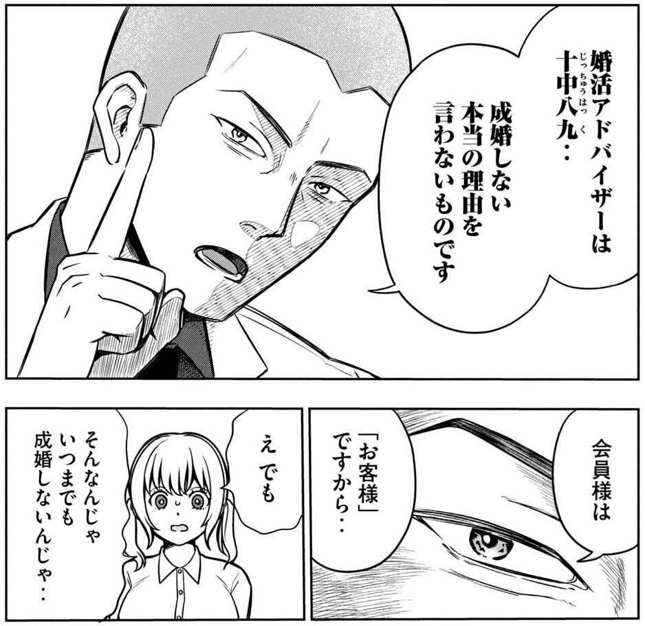 この漫画はロマンチックな「運命論」を否定しながら驚異の成婚率を誇る柏木と相談者の「本気の伴走」を見せてくれます。