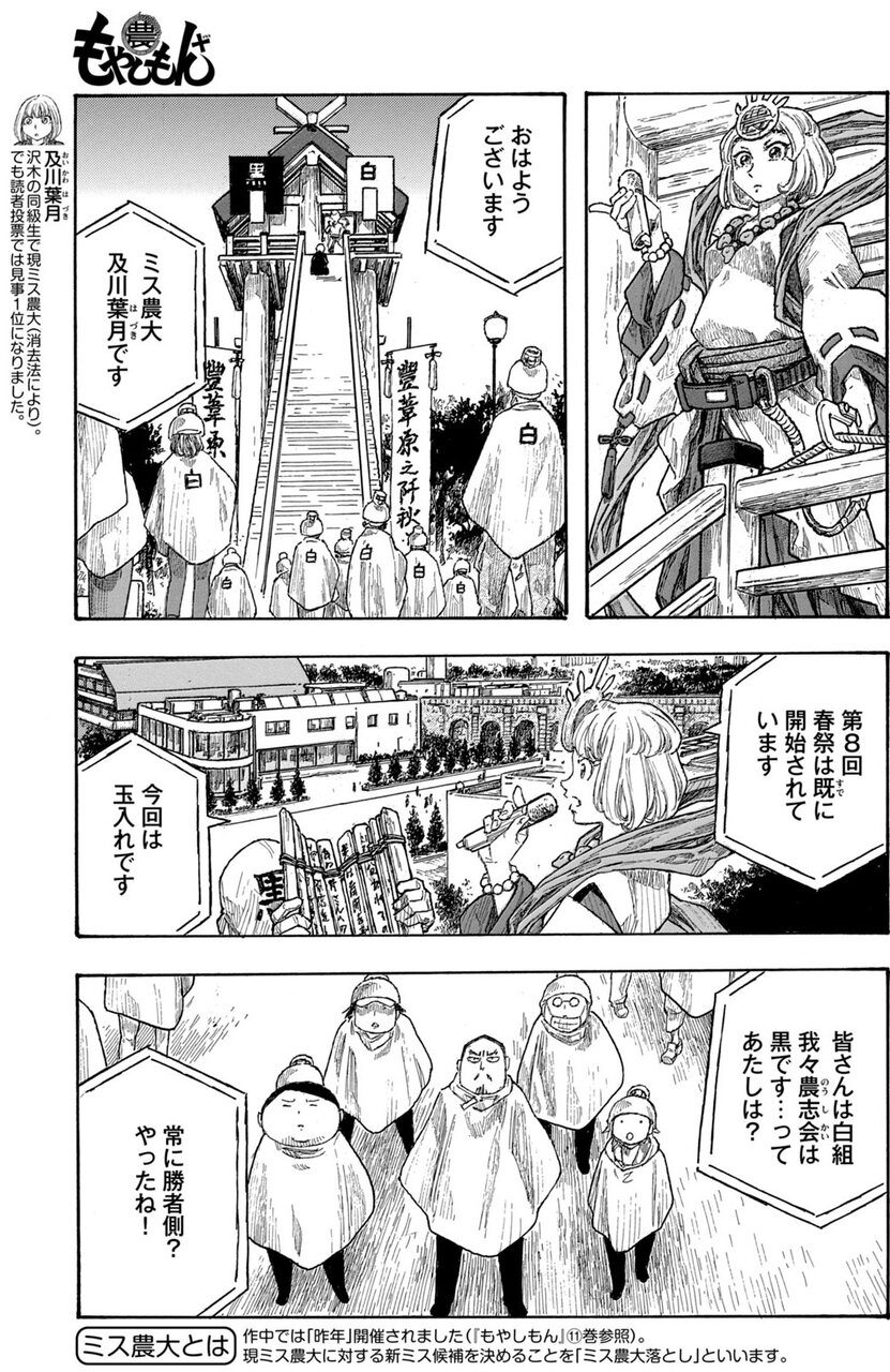 菌たちの「かもし進捗報告」や、“結城”や“西野”による日本酒のお披露目会も進むなか、春祭のワチャワチャが続く。次から次へと現れる懐かしい顔ぶれにニヤけてしまう1巻だ。