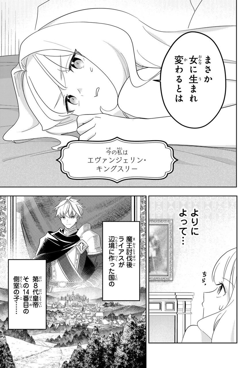 女に生まれ変わっていました。しかも“エヴァンジェリン(エヴァ)”は皇女なので、お嬢様中のお嬢様。