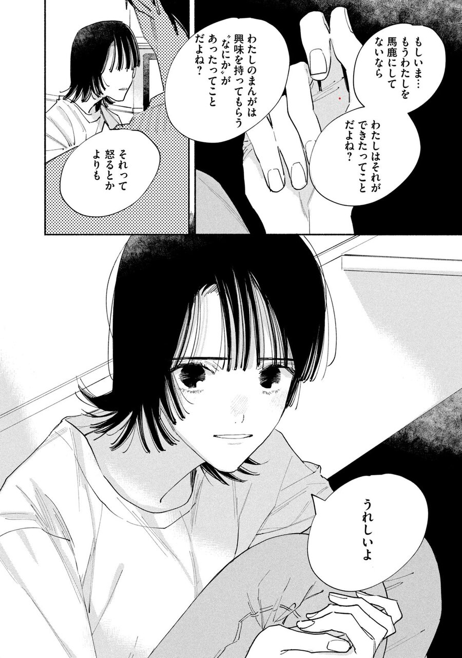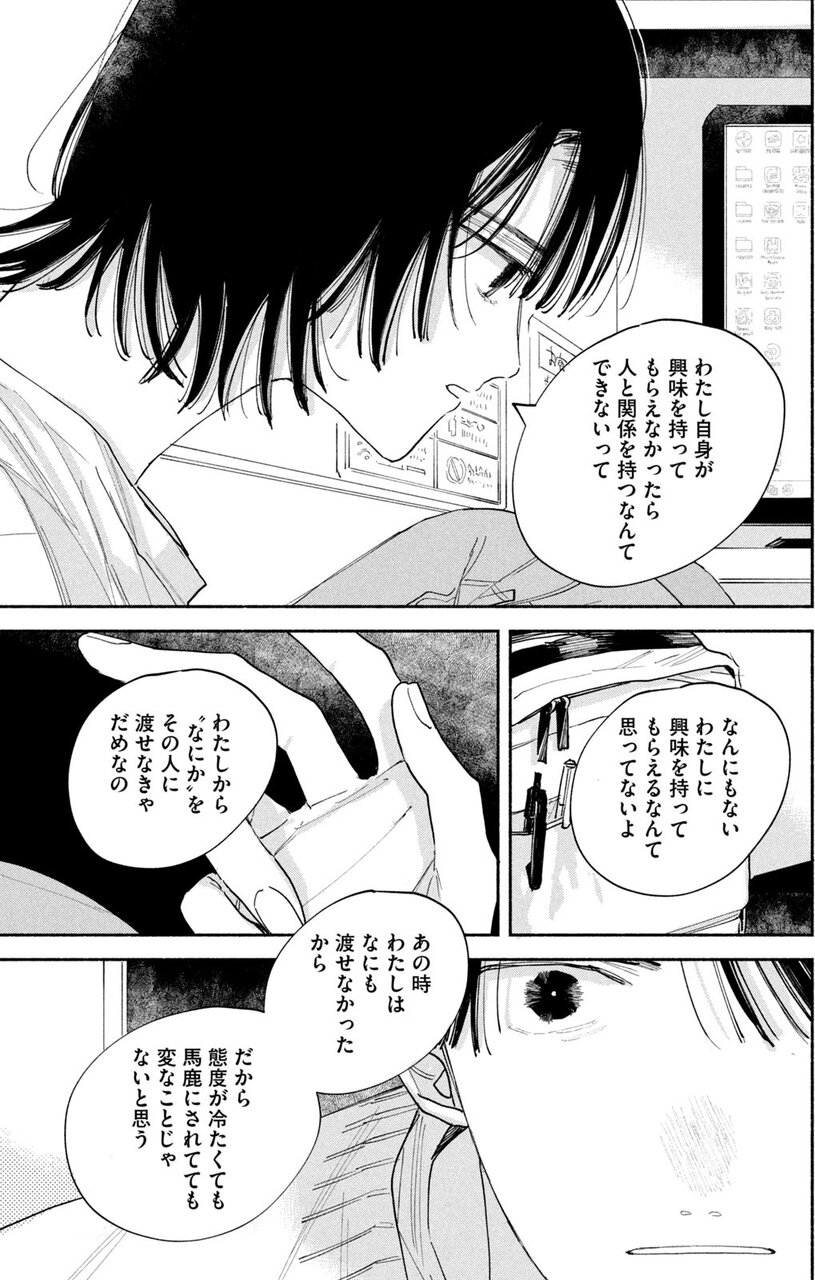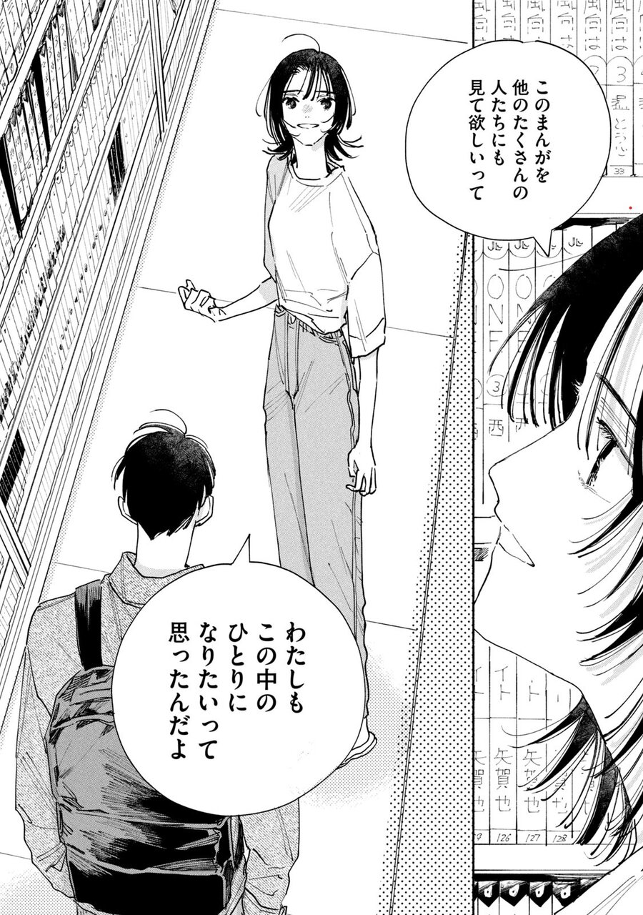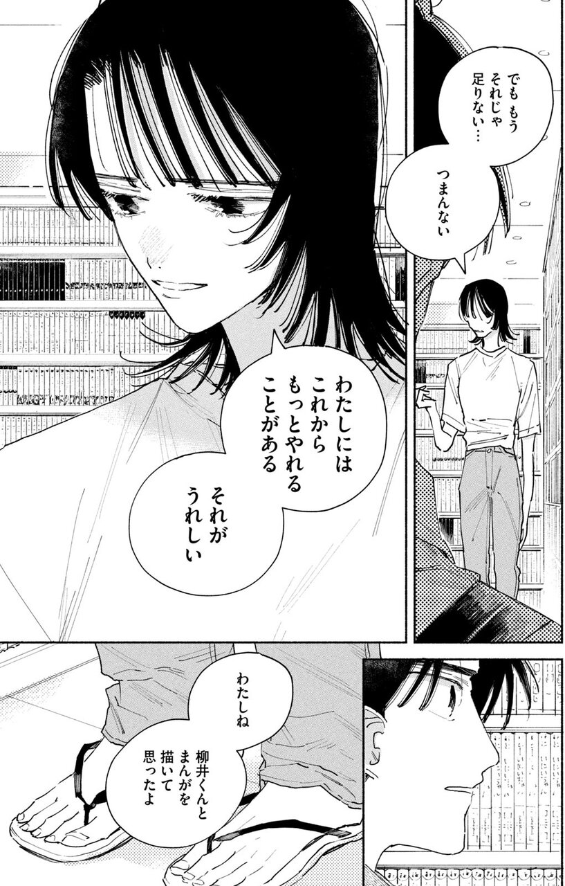 マンガは、自分と誰かをそっとつなぐための大切な手段。柳井に読んでもらえたことでひとつ満たされ、生きることに対してもどこか距離を置いてしまっているようでした。