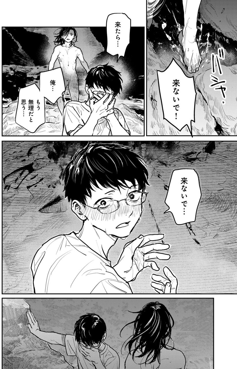 出会いは15年前。高遠幸也こと「ゆき」は、父親の家庭内暴力から逃げるため、漁業と温泉しかない海辺の母の実家に住んでいた。しかし、ゆきは出戻った娘に冷たい祖父や、自分と母の事情を噂する人たちに囲まれ、町に馴染めないでいた。そんなある日、彼は“凪の洞門”と呼ばれる洞窟で、口から血を流し裸で苦しむ男を見つける。
