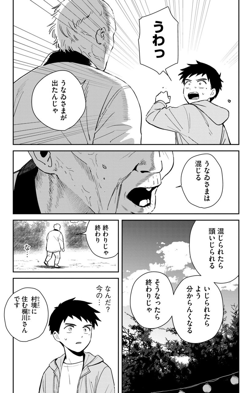 かつてこの村では、「うなゐさま」という怪異が人間になりすまし、村や家族に混ざり、悪さをしては村人を困らせていた。一度うなゐさまになりすまされると、決してそのことを見抜ける者はいなかった。うなゐさまに記憶をいじられるからだ。やがて村では疑心暗鬼から争いが絶えず起こるようになり、村人達はうなゐさまの名を出すのも憚(はばか)るようになった。