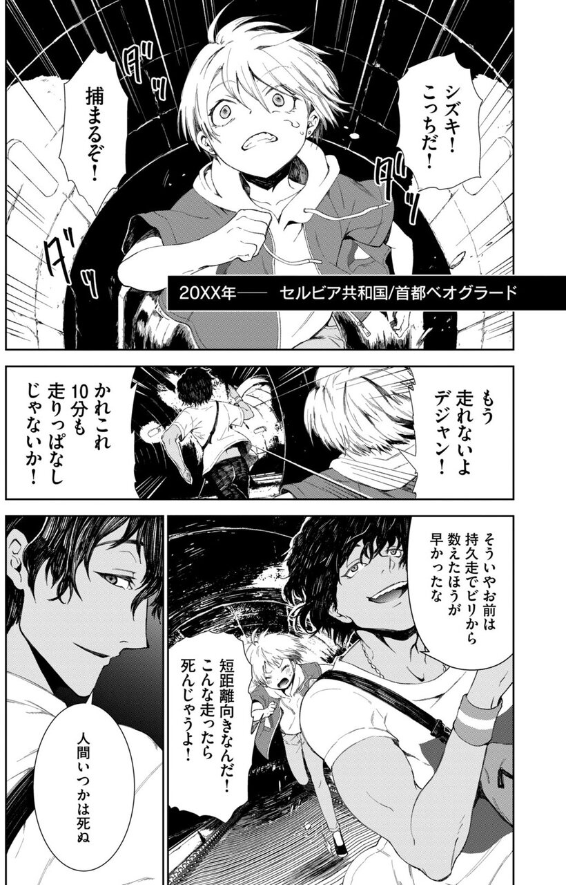 コミカライズにあたり、Summertimeの主宰を務める隷蔵庫が原作を新たに書き下ろし、作画を『頂のリヴィーツァ』の山座一心が担当。同作でディストピア×特殊能力を描いていた山座の参加は、まさに適材適所といえるかもしれません。