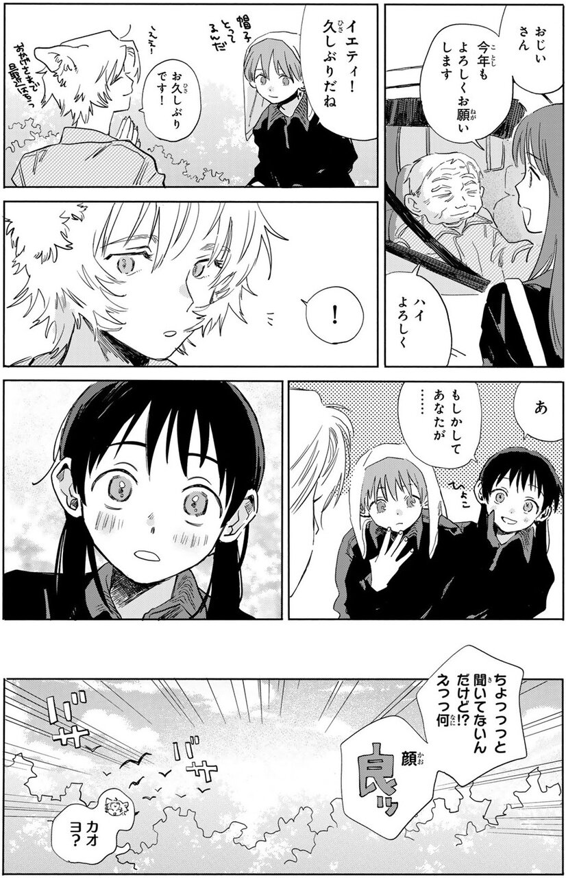ヒマラヤから来たイエティは、ハナと過ごす日々をどんなふうに味わい、いつまで卯塚村に滞在するのでしょう。ゆるやかに続く日常は「静止していない」ともいえます。やがて変わることはある?