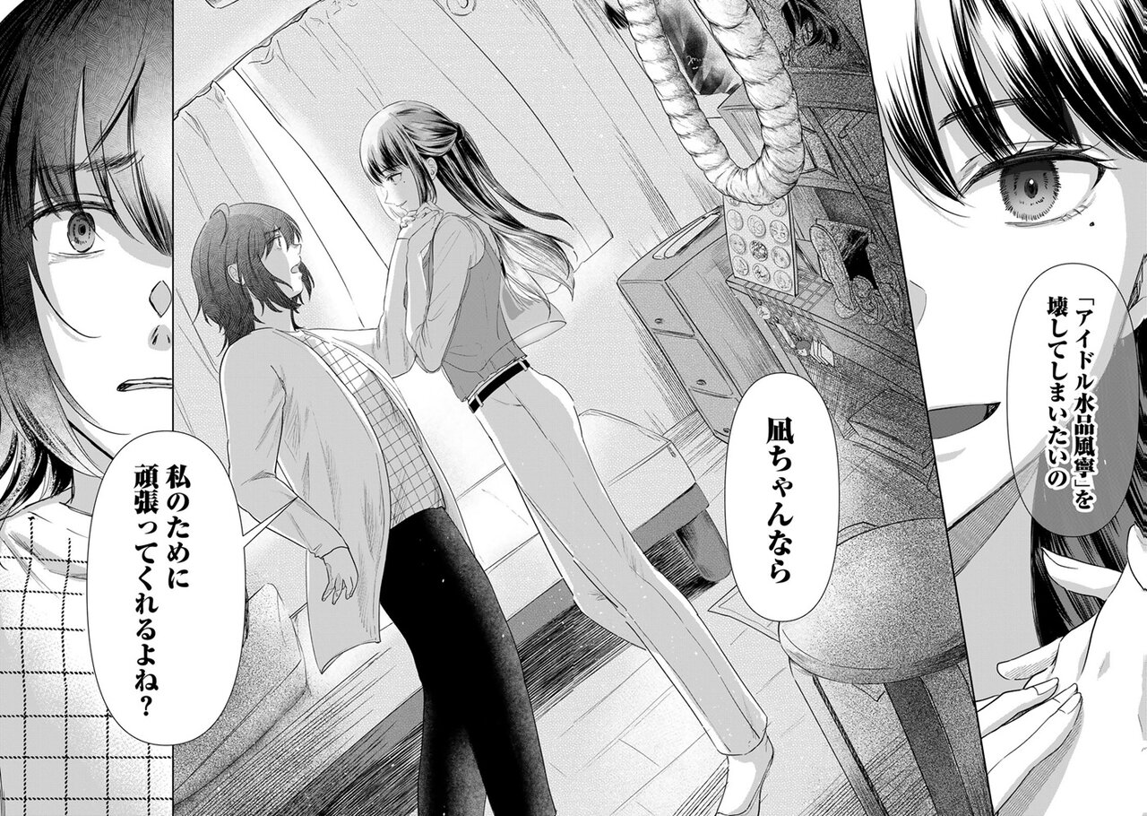 握手会を抜け出したふたりは、凪斗の家で独占握手会を開く。凪斗のヤケド痕が残る手にキスをする風寧。「凪ちゃんのしてほしいことは何でもするからね その代わり手伝ってほしいことがあるの」と語りかける。