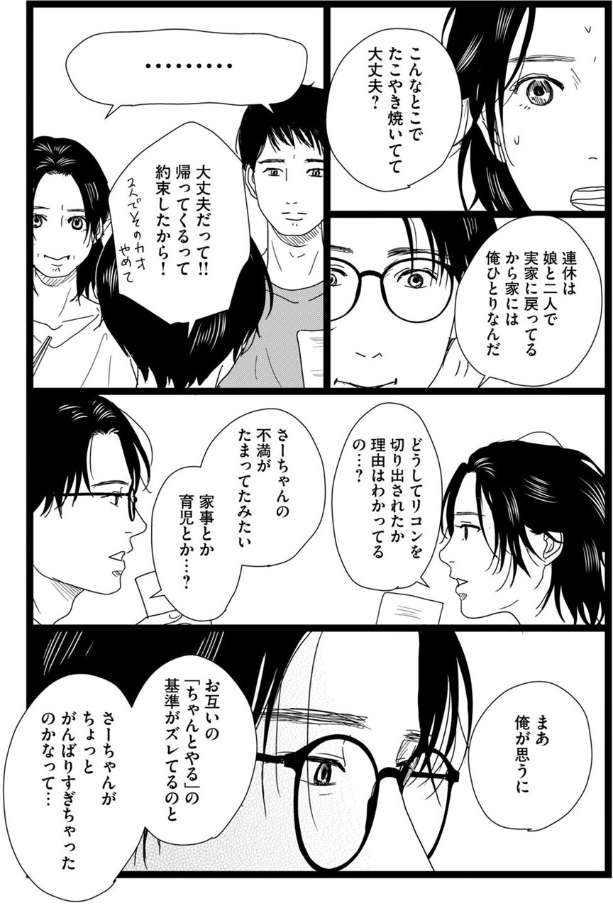 第4話では、『1122』の主人公“いちことおとやん”が再登場。傷心の夫・敦史の抱える問題点と致命的無理解を、タコ焼きパーティーと同時進行で炙り出していくシーンは、コミカルかつスリリングな本編随一の見せ場だ。回想シーンが全員の眼前に再生されるリアリズム的には掟破りなくだりも楽しい。